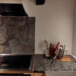 キッチン周りの腰壁に同じ大理石を使用